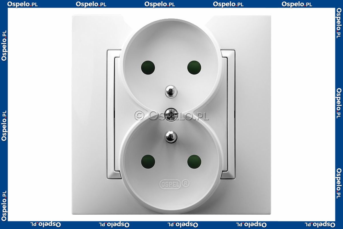 GP-2UZP/00 Gniazdo podwójne z uziemieniem z przesłonami torów prądowych, gniazdo kompletne, nie pasujące do ramek 16A (Zaciski śrubowe) Biały Ospel Aria - Widok z przodu