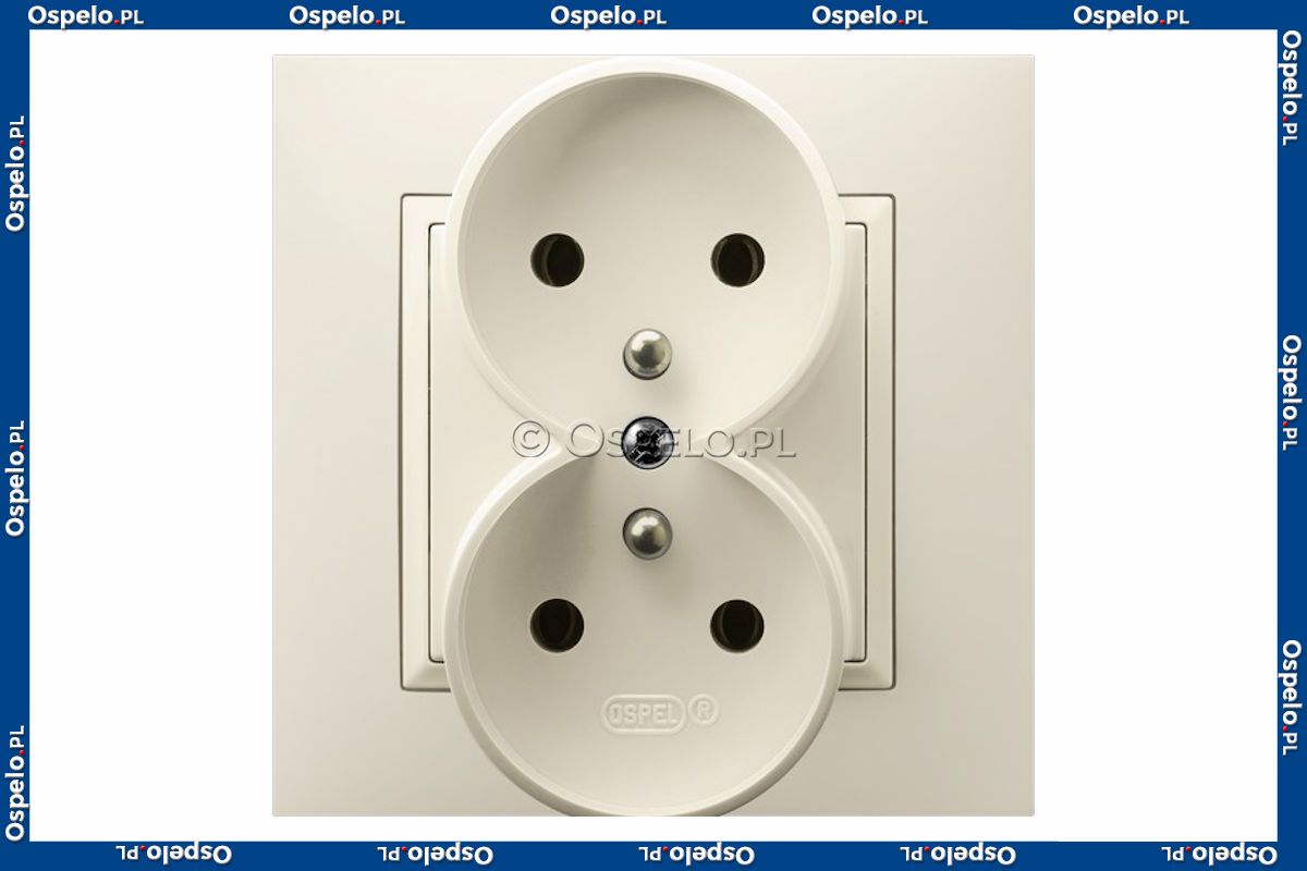 GP-2UZP/27 Gniazdo podwójne z uziemieniem z przesłonami torów prądowych, gniazdo kompletne, nie pasujące do ramek 16A (Zaciski śrubowe) Ecru Ospel Aria - Widok z przodu