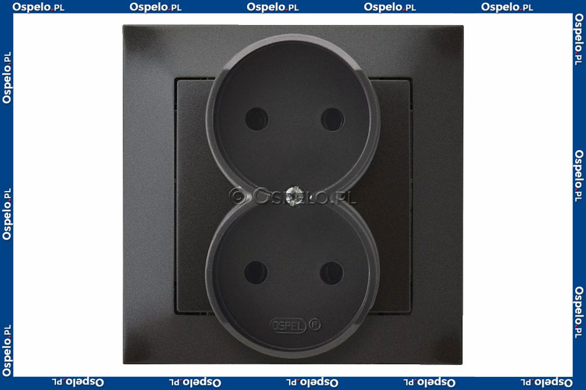 GP-2Y/50 Gniazdo podwójne bez uziemienia, gniazdo kompletne, nie pasujące do ramek 16A (Zaciski śrubowe) Antracyt Ospel Impresja - Widok z przodu