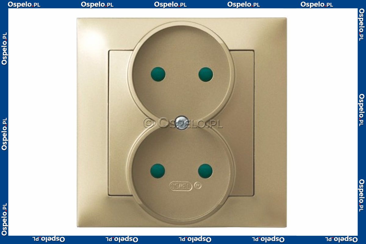 Poznaj doskonałe połączenie funkcjonalności i bezpieczeństwa z podwójnym gniazdem elektrycznym z przesłonami torów prądowych GP-2YP/28 w eleganckim, złotym metalik kolorze z serii IMPRESJA. To standardowe gniazdo elektryczne, choć pozbawione uziemienia, oferuje niezrównaną wygodę użytkowania i wyjątkowy styl, idealnie komponując się z nowoczesnymi wnętrzami.