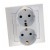 Podwójne gniazdo z serii IMPRESJA wyróżnia się unikalnym umiejscowieniem uziemienia - dwa bolce z boku, co jest charakterystyczne dla systemu Schuko. Dzięki temu gniazdo jest przeznaczone na rynki innych krajów, takich jak Niemcy, gdzie tego typu rozwiązania są standardem. To sprawia, że jest idealnym wyborem dla międzynarodowych projektów oraz nowoczesnych instalacji elektrycznych.