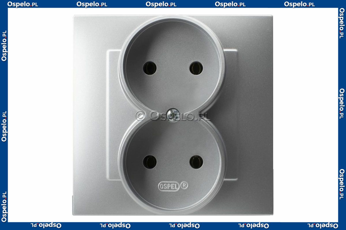 GP-2Z/18 Gniazdo podwójne bez uziemienia, gniazdo kompletne, nie pasujące do ramek 16A (Zaciski śrubowe) Srebro Ospel Szafir - Widok z przodu