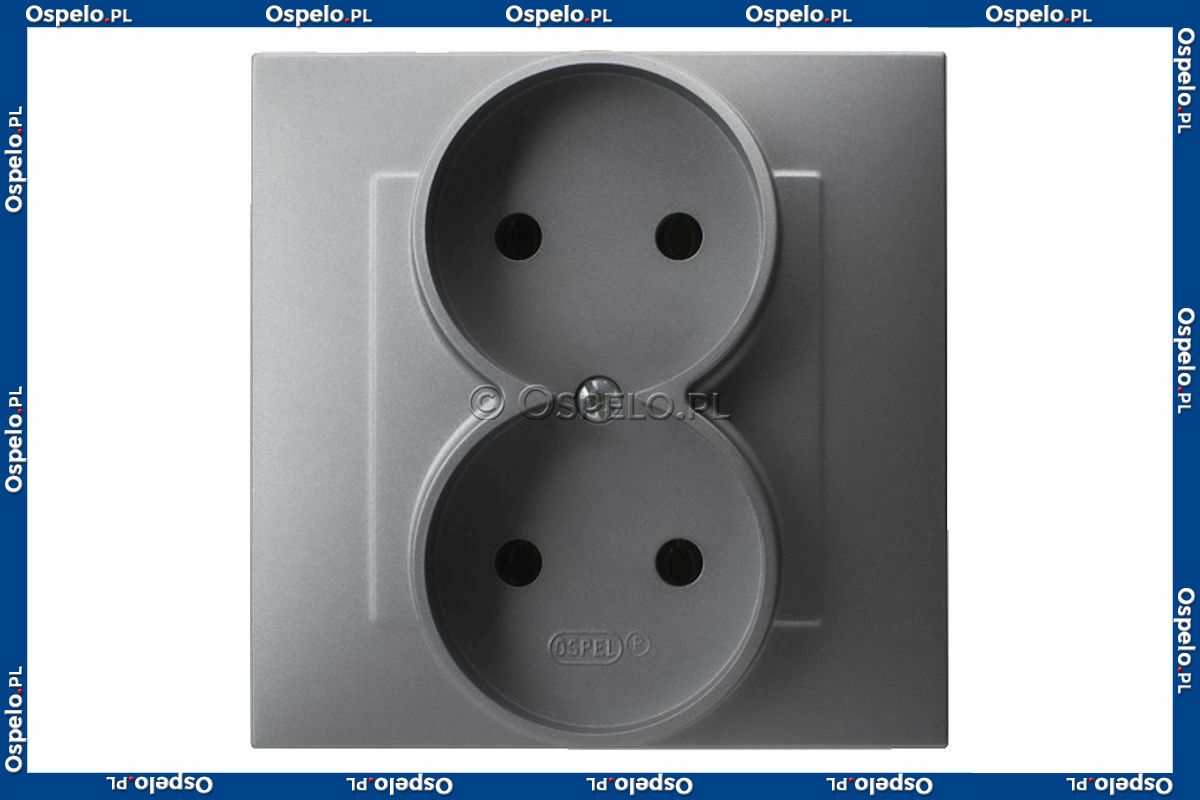 GP-2Z/70 Gniazdo podwójne bez uziemienia, gniazdo kompletne, nie pasujące do ramek 16A (Zaciski śrubowe) Szary Mat. Ospel Szafir - Widok z przodu