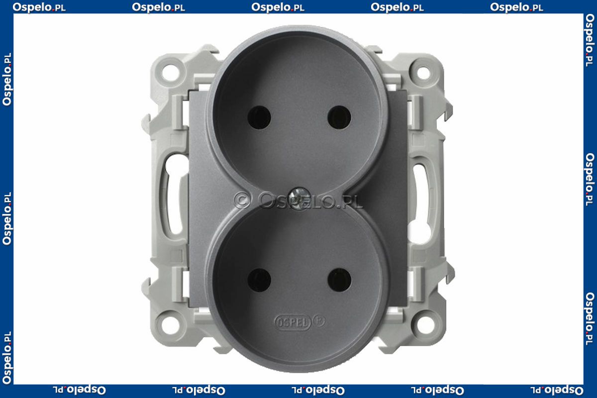 GP-2ZR/m/70 Gniazdo podwójne bez uziemienia 16A (Zaciski śrubowe) Szary Mat. Ospel Szafir - Widok z przodu