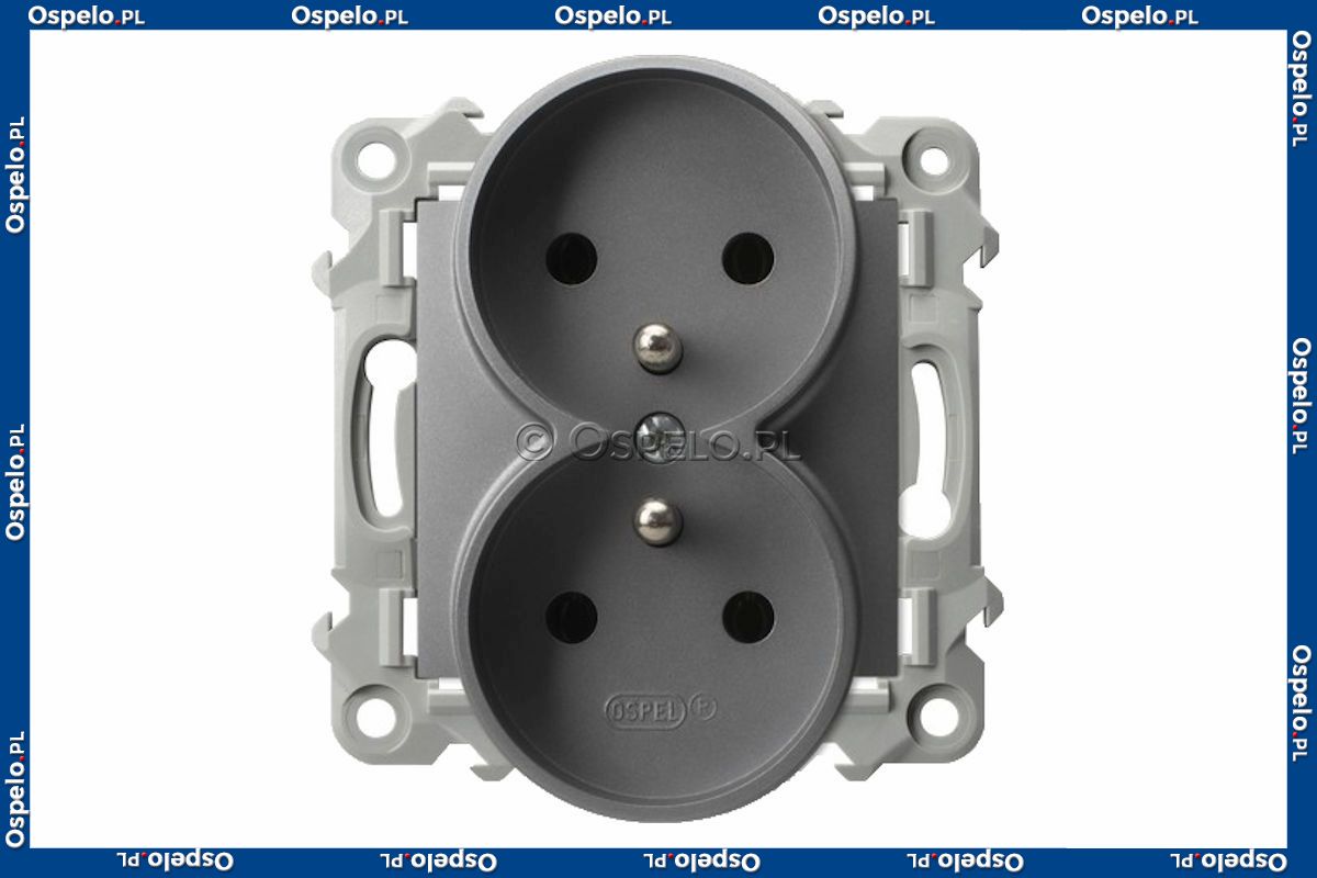 GP-2ZRZ/m/70 Gniazdo podwójne z uziemieniem 16A (Zaciski śrubowe) Szary Mat. Ospel Szafir - Widok z przodu