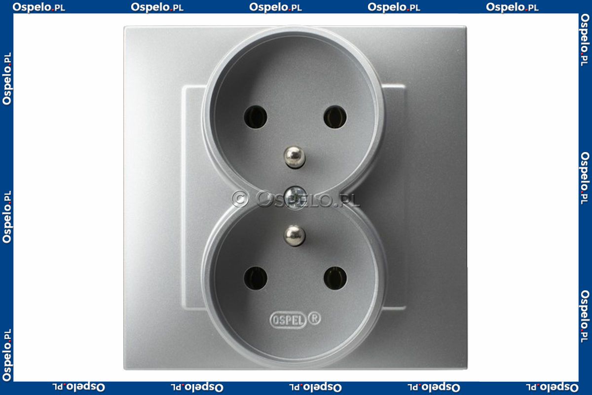 Gniazdo podwójne z uziemieniem, gniazdo kompletne, nie pasujące do ramek 16A (Zaciski śrubowe) Srebro Ospel Szafir