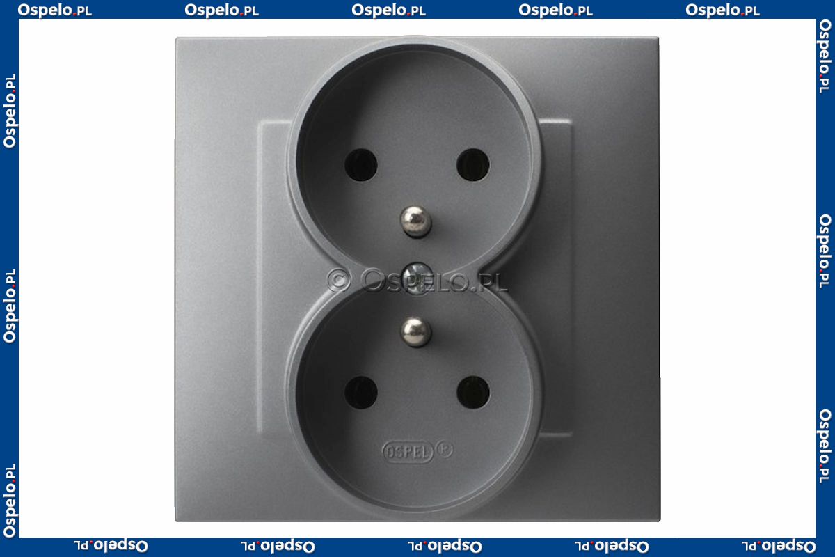 Gniazdo podwójne z uziemieniem, gniazdo kompletne, nie pasujące do ramek 16A (Zaciski śrubowe) Szary Mat. Ospel Szafir