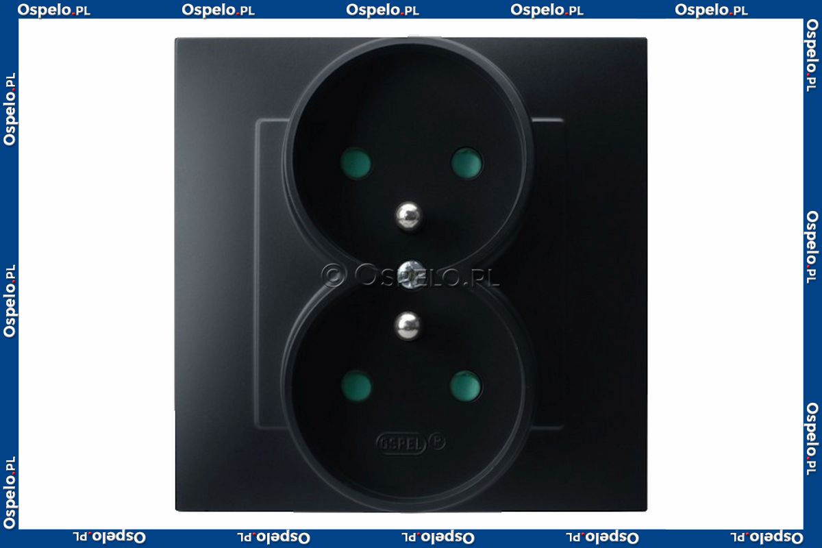 Gniazdo podwójne z uziemieniem i przesłonami torów prądowych, gniazdo kompletne, nie pasujące do ramek 16A (Zaciski śrubowe) Czarny Metalik Ospel Szafir