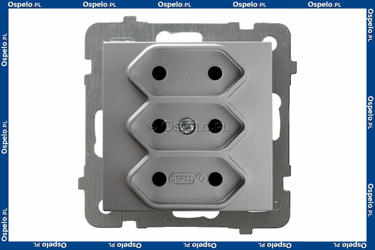 GP-3G/m/18 Gniazdo potrójne na płaskie wtyczki 2,5A (Zaciski śrubowe) Srebro Ospel As - Widok z przodu