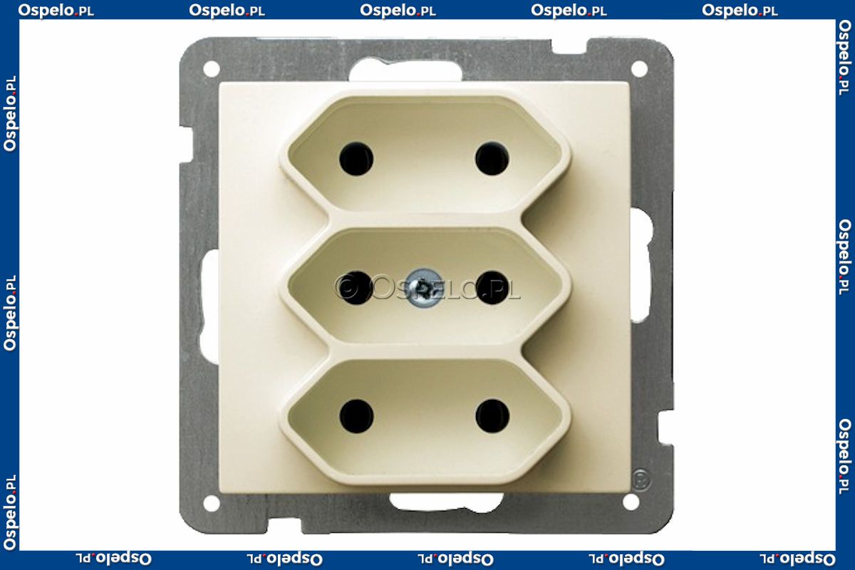 GP-3G/m/27 Gniazdo potrójne na płaskie wtyczki 2,5A (Zaciski śrubowe) Ecru Ospel As - Widok z przodu