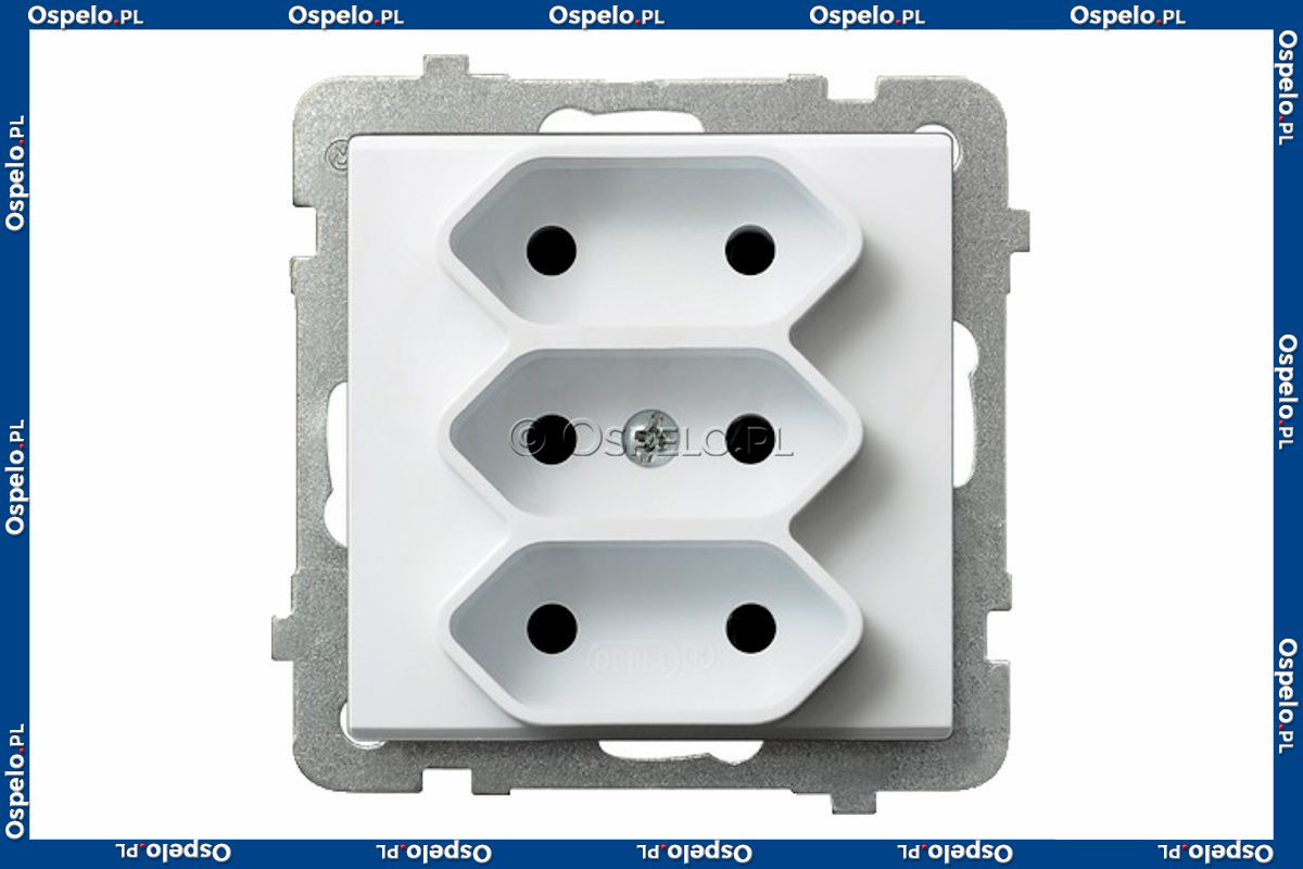 GP-3R/m/00 Gniazdo potrójne na płaskie wtyczki 2,5A (Zaciski śrubowe) Biały Ospel Sonata - Widok z przodu