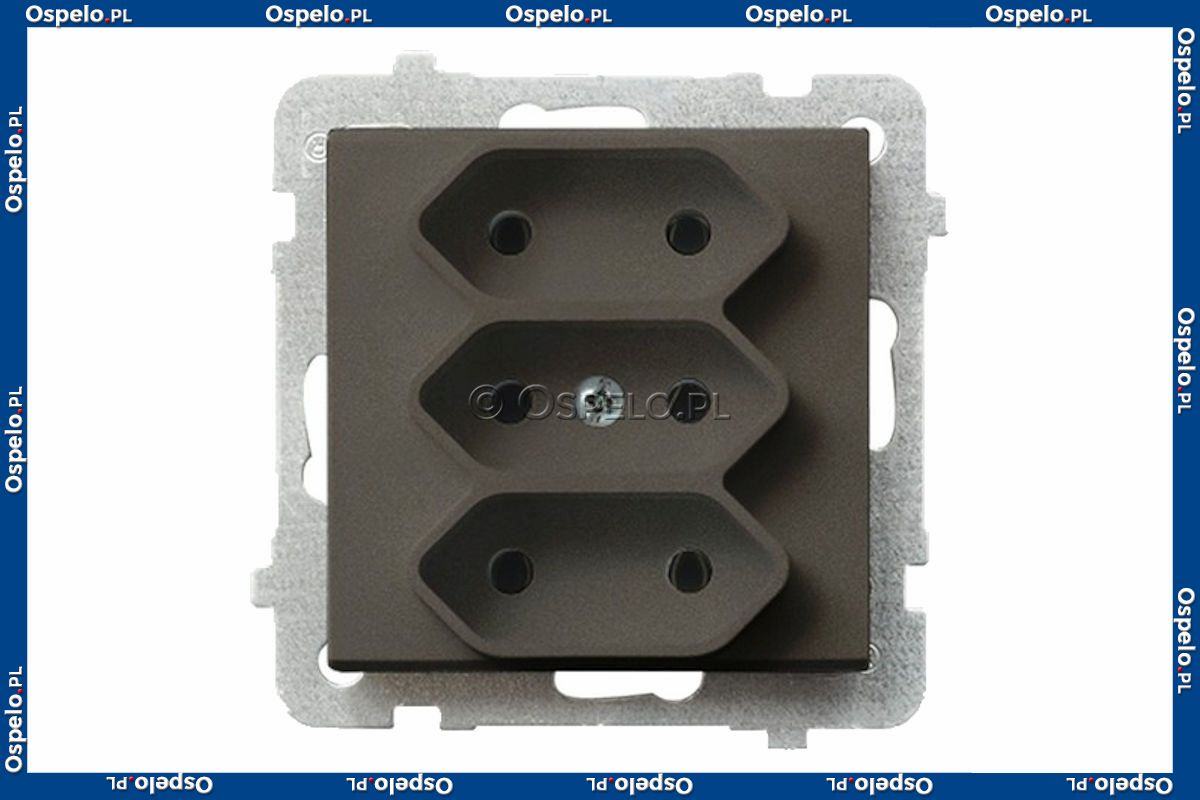 GP-3R/m/40 Gniazdo potrójne na płaskie wtyczki 2,5A (Zaciski śrubowe) Czekoladowy Metalik Ospel Sonata - Widok z przodu