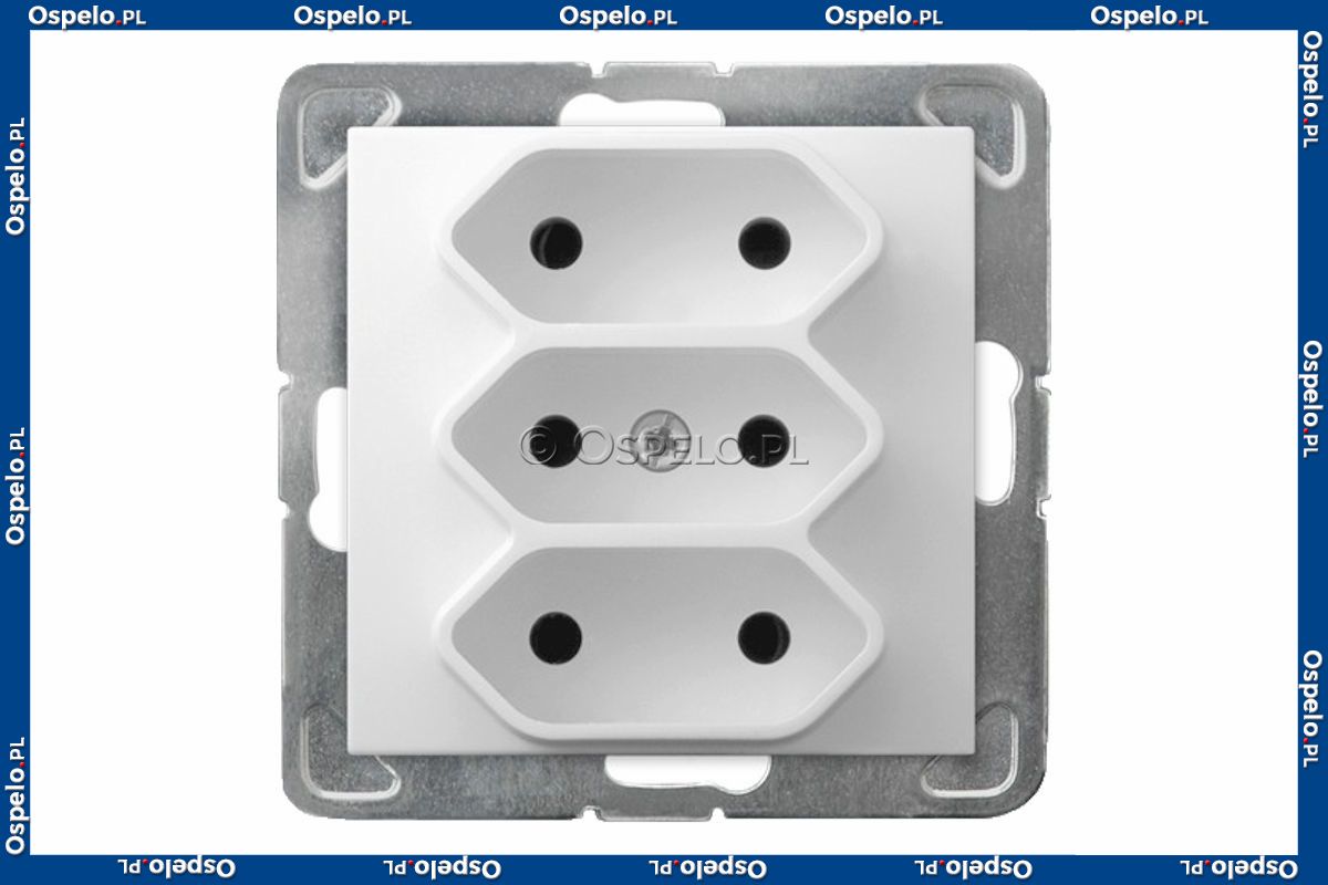 Poznaj wyjątkowe rozwiązanie dla Twojego domu z potrójnym gniazdem euro GP-3Y/m/00 w eleganckim, białym kolorze z serii IMPRESJA. To innowacyjne gniazdo elektryczne zostało zaprojektowane z myślą o nowoczesnych wnętrzach i funkcjonalności, umożliwiając jednoczesne podłączenie aż trzech urządzeń wyposażonych w płaskie wtyczki.
