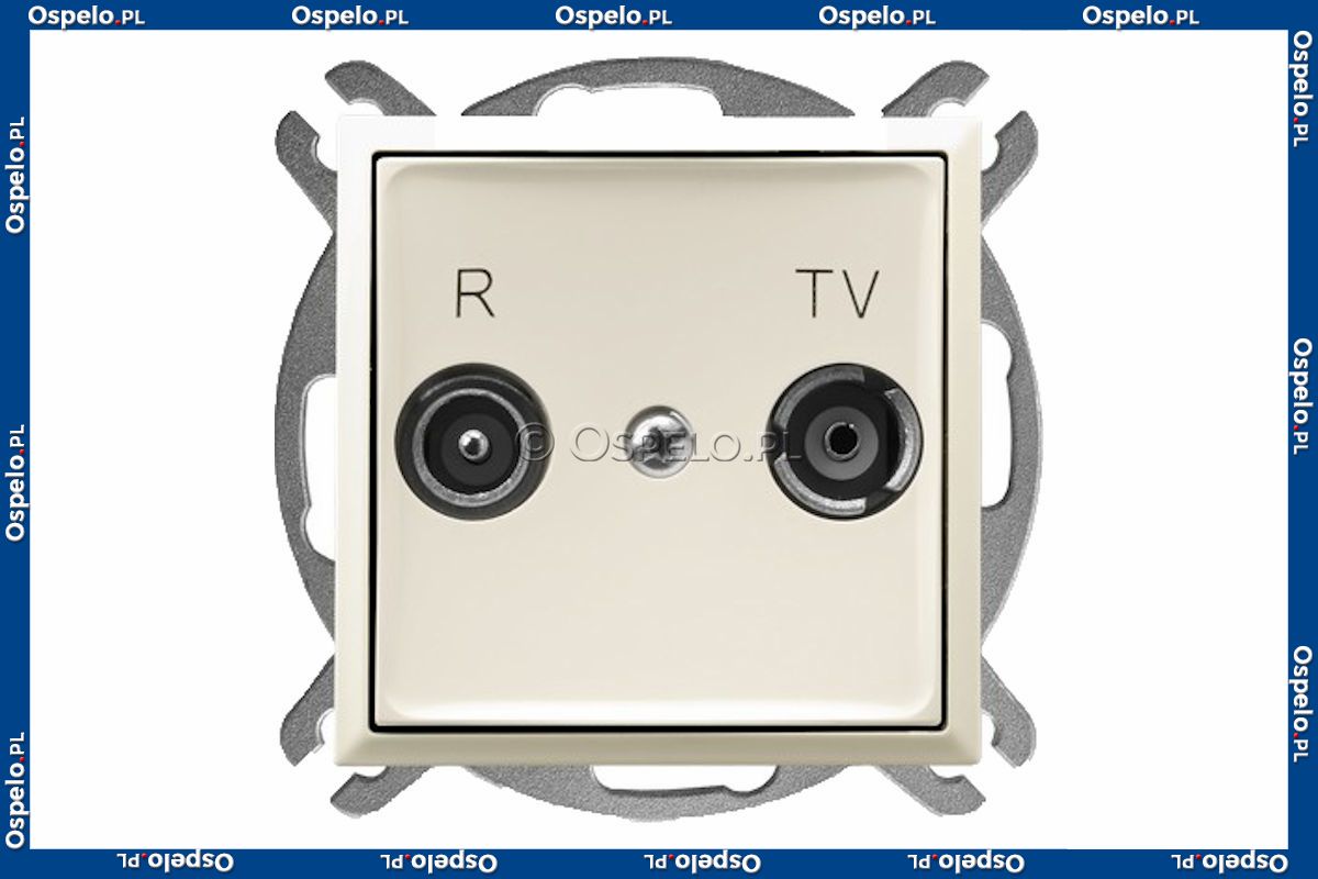 GPA-10UP/m/27 Gniazdo RTV przelotowe 10dB Ecru Ospel Aria - Widok z przodu