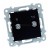 Czarny wyłącznik Ospel Szafir na szarej ścianie w nowoczesnym wnętrzu z fioletową ścianą, obrazami i szarym fotelem