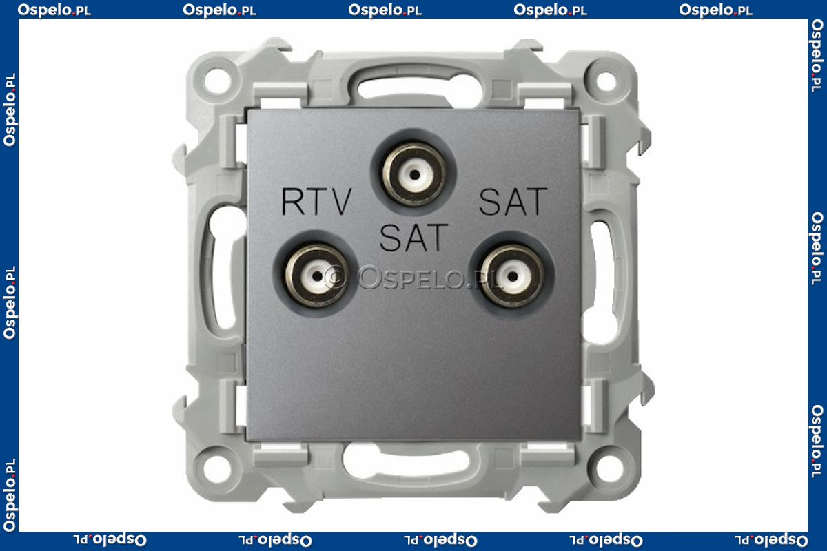 GPA-Z2S/m/70 Gniazdo antenowe RTV-SAT-SAT z dwoma wyjściami SAT Szary Mat. Ospel Szafir - Widok z przodu