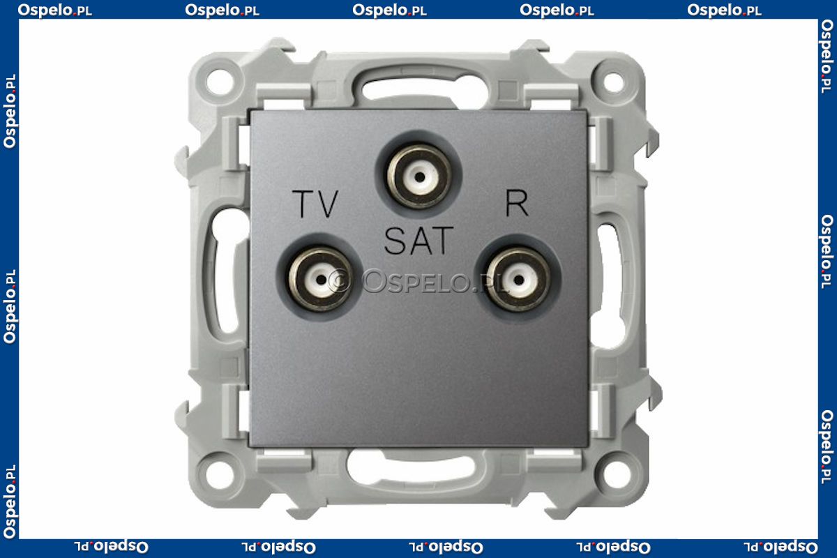 GPA-ZS/m/70 Gniazdo antenowe RTV-SAT Końcowe Szary Mat. Ospel Szafir - Widok z przodu