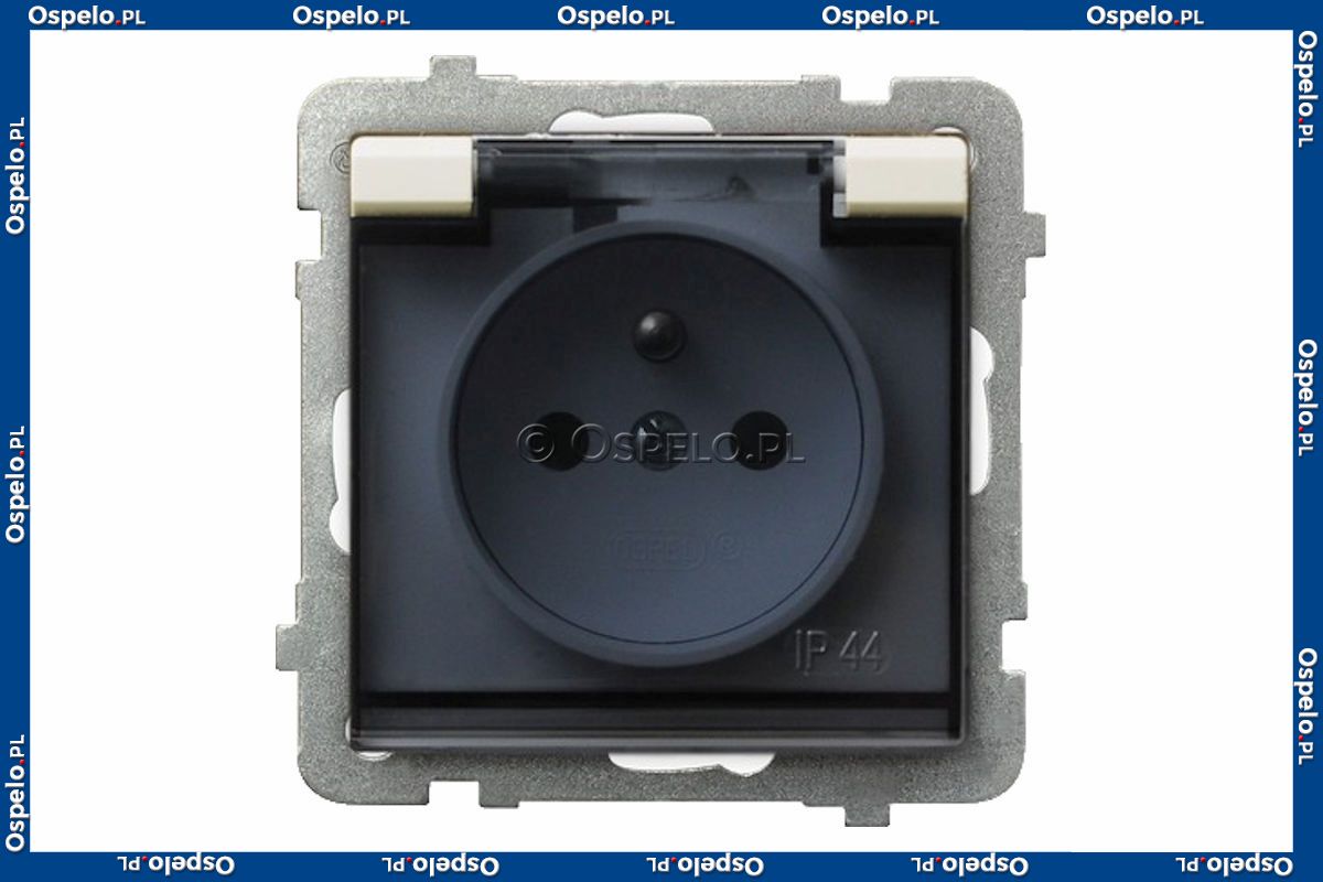 GPH-1RZ/m/27/d Gniazdo bryzgoszczelne z uziemieniem IP44, wieczko przezroczyste 16A (Zaciski śrubowe) Ecru Ospel Sonata - Widok z przodu