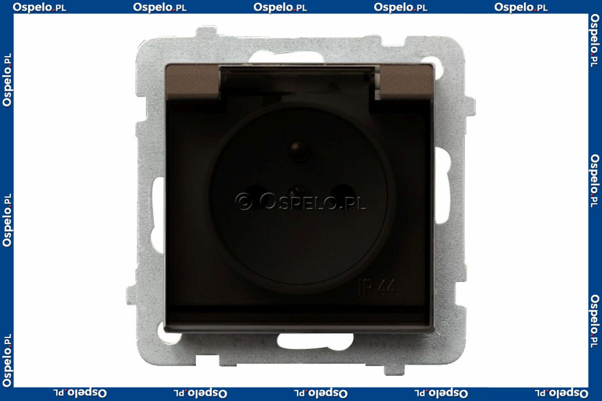 GPH-1RZ/m/40/d Gniazdo bryzgoszczelne z uziemieniem IP44, wieczko przezroczyste 16A (Zaciski śrubowe) Czekoladowy Metalik Ospel Sonata - Widok z przodu