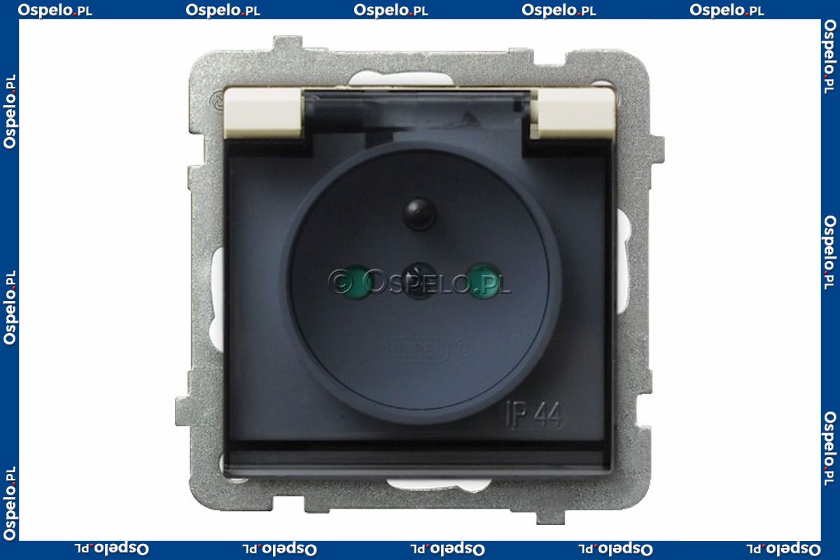 GPH-1RZP/m/27/d Gniazdo bryzgoszczelne z uziemieniem IP44 z przesłonami torów prądowych, wieczko w kolorze wyrobu 16A (Zaciski śrubowe) 16A (Zaciski śrubowe) Ecru Ospel Sonata - Widok z przodu