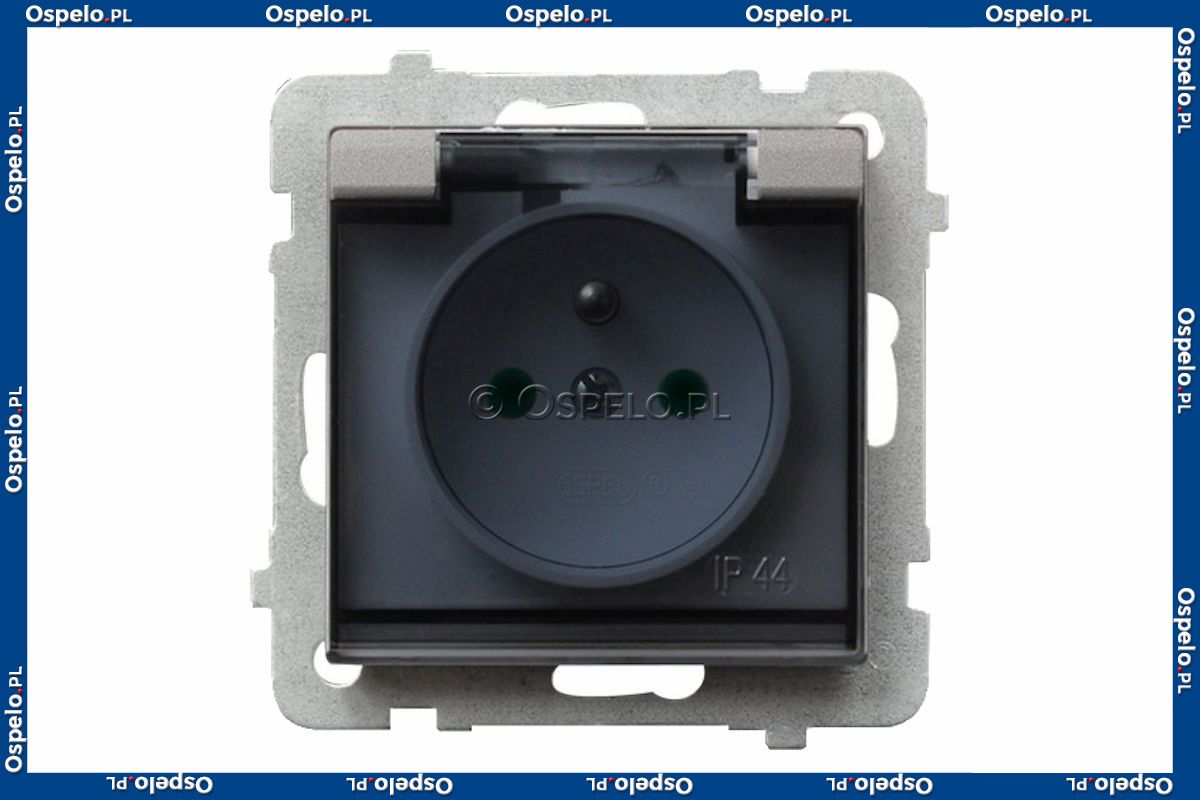 GPH-1RZP/m/38/d Gniazdo bryzgoszczelne z uziemieniem IP44 z przesłonami torów prądowych, wieczko w kolorze wyrobu 16A (Zaciski śrubowe) 16A (Zaciski śrubowe) Srebro Mat Ospel Sonata - Widok z przodu
