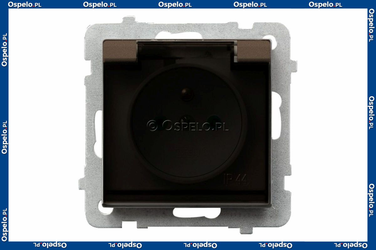 Gniazdo bryzgoszczelne z uziemieniem IP44 z przesłonami torów prądowych, wieczko w kolorze wyrobu 16A (Zaciski śrubowe) 16A (Zaciski śrubowe) Czekoladowy Metalik Ospel Sonata