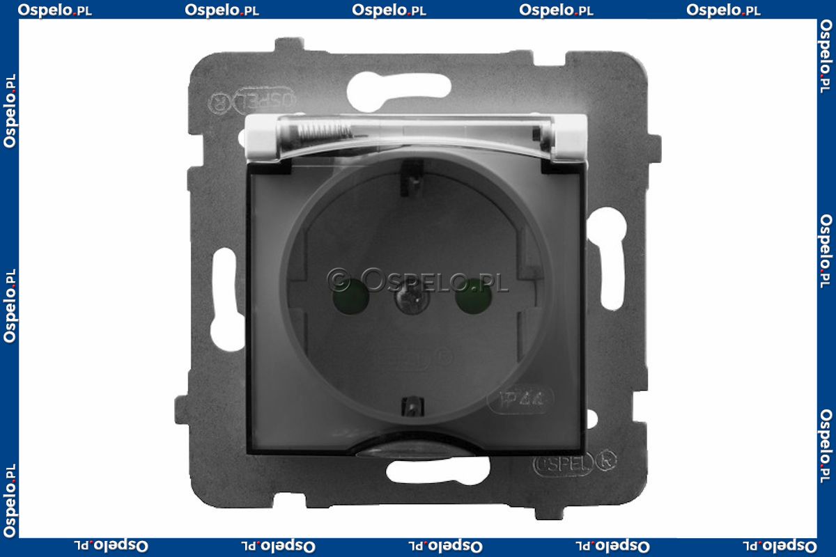 GPH-1USP/m/00/d Gniazdo bryzgoszczelne z uziemieniem schuko IP-44 wieczko przezroczyste z przesłonami torów prądowych