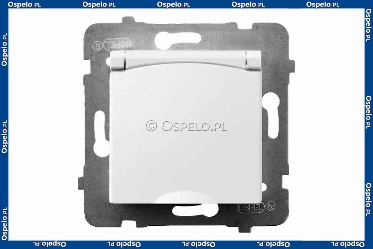 GPH-1UZ/m/00/w Gniazdo bryzgoszczelne z uziemieniem IP44, wieczko w kolorze wyrobu 16A (Zaciski śrubowe) Biały Ospel Aria - Widok z przodu