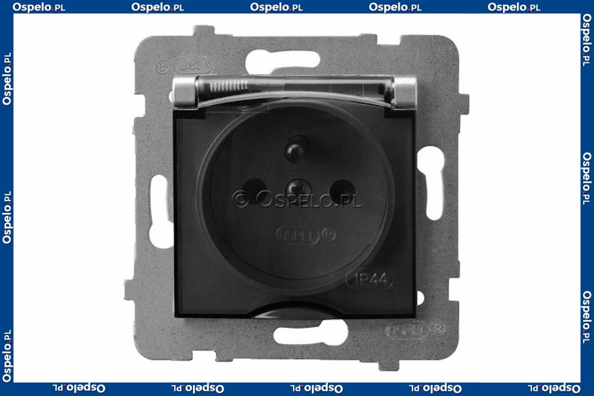 Gniazdo bryzgoszczelne z uziemieniem IP44, wieczko przezroczyste 16A (Zaciski śrubowe) Srebro Ospel Aria
