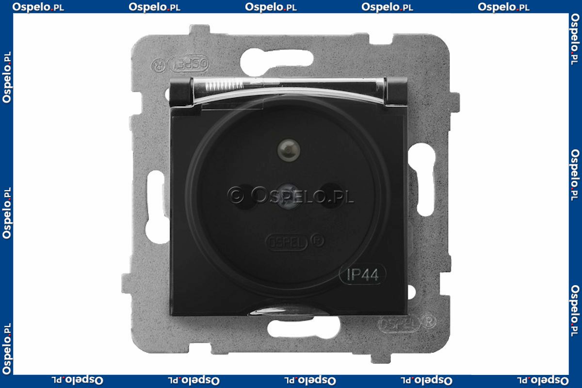 GPH-1UZ/m/33/d Gniazdo bryzgoszczelne z uziemieniem IP44, wieczko przezroczyste 16A (Zaciski śrubowe) Czarny Metalik Ospel Aria - Widok z przodu