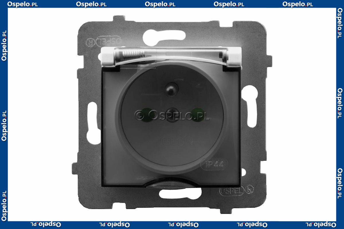 GPH-1UZP/m/00/d Gniazdo bryzgoszczelne z uziemieniem IP44 i przesłonami torów prądowych, wieczko przezroczyste 16A (Zaciski śrubowe) Biały Ospel Aria - Widok z przodu