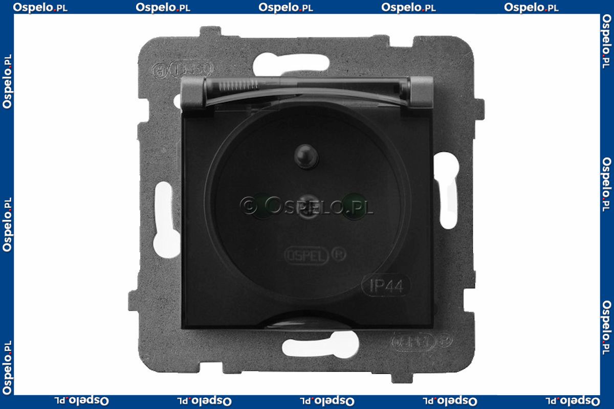Gniazdo bryzgoszczelne z uziemieniem IP44 i przesłonami torów prądowych, wieczko przezroczyste 16A (Zaciski śrubowe) Szary Mat. Ospel Aria
