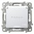Biały włącznik Ospel Szafir z podświetleniem LED w nowoczesnym salonie z szarą ścianą i jasnymi meblami