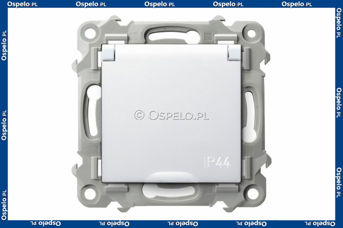 Gniazdo bryzgoszczelne z uziemieniem IP44, wieczko w kolorze wyrobu 16A (Zaciski śrubowe) Biały Ospel Szafir