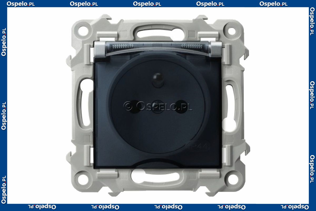 Gniazdo bryzgoszczelne z uziemieniem IP44, wieczko przezroczyste 16A (Zaciski śrubowe) Srebro Ospel Szafir