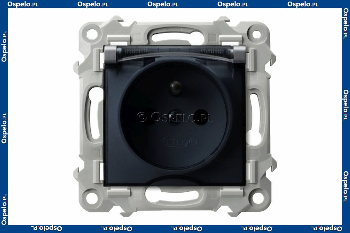 Gniazdo bryzgoszczelne z uziemieniem IP44, wieczko przezroczyste 16A (Zaciski śrubowe) Szary Mat. Ospel Szafir