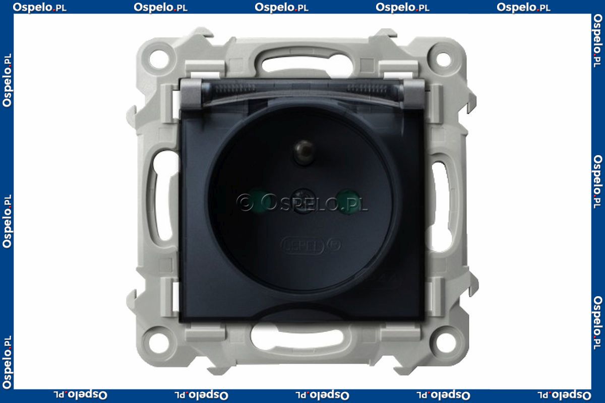 Gniazdo bryzgoszczelne z uziemieniem IP44 i przesłonami torów prądowych, wieczko przezroczyste 16A (Zaciski śrubowe) Szary Mat. Ospel Szafir