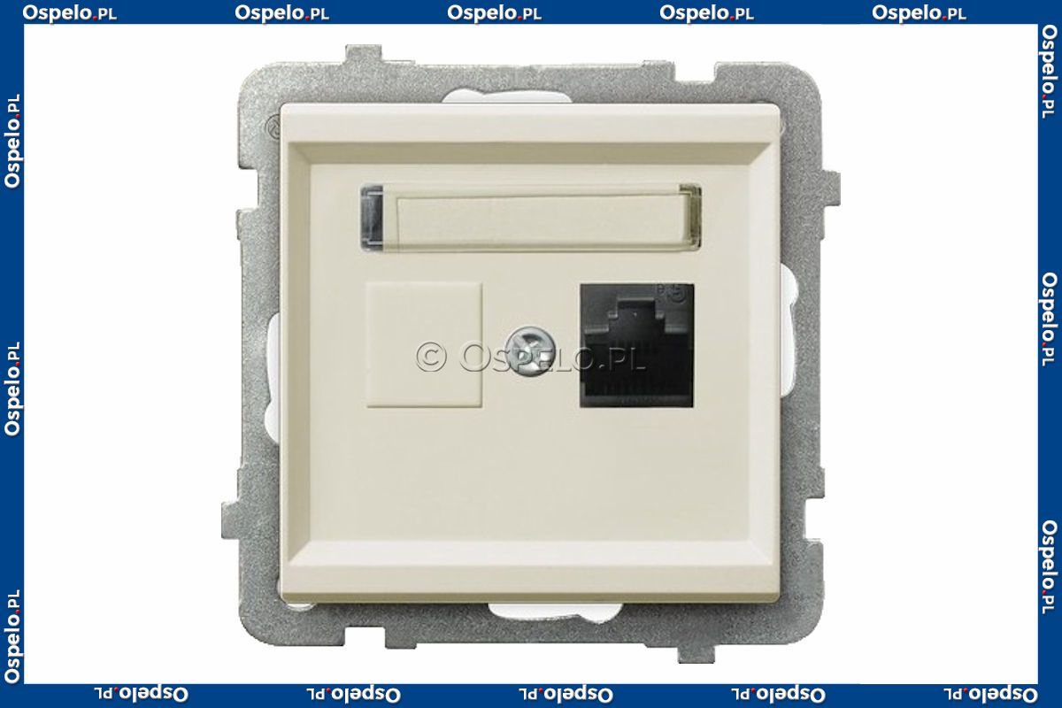 GPK-1R/K/m/27 Gniazdo komputerowe pojedyncze kat. 5e MMC Ecru Ospel Sonata - Widok z przodu