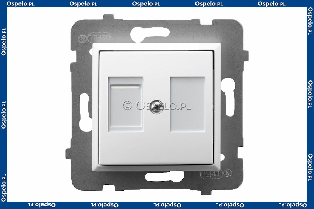 GPK-1UP/p/00 Pokrywa gniazda pojedynczego typu Keystone prosta z przesłoną przeciwkurzową Biały Ospel Aria - Widok z przodu