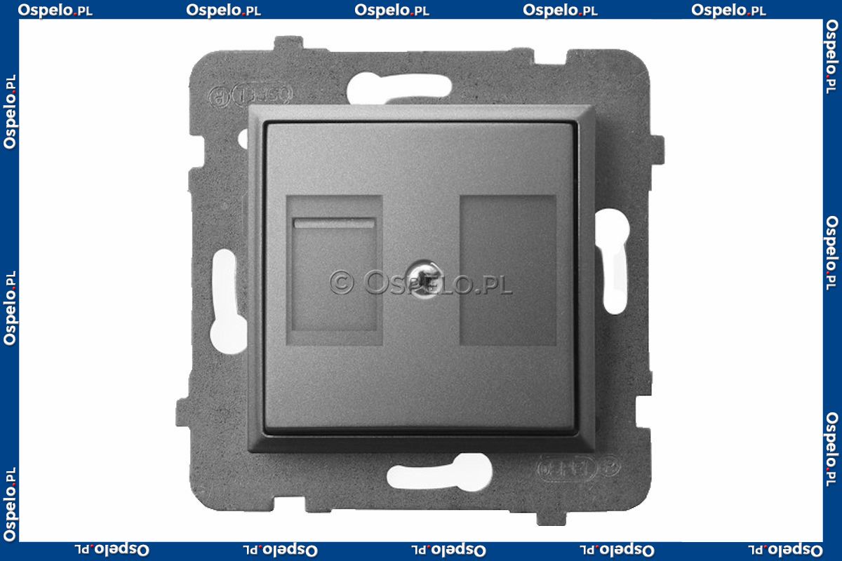GPK-1UP/p/70 Pokrywa gniazda pojedynczego typu Keystone prosta z przesłoną przeciwkurzową Szary Mat. Ospel Aria - Widok z przodu