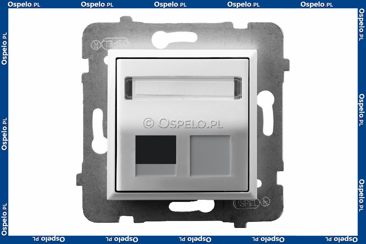 GPK-1US/p/00 Pokrywa gniazda pojedynczego typu Keystone skośna Biały Ospel Aria - Widok z przodu
