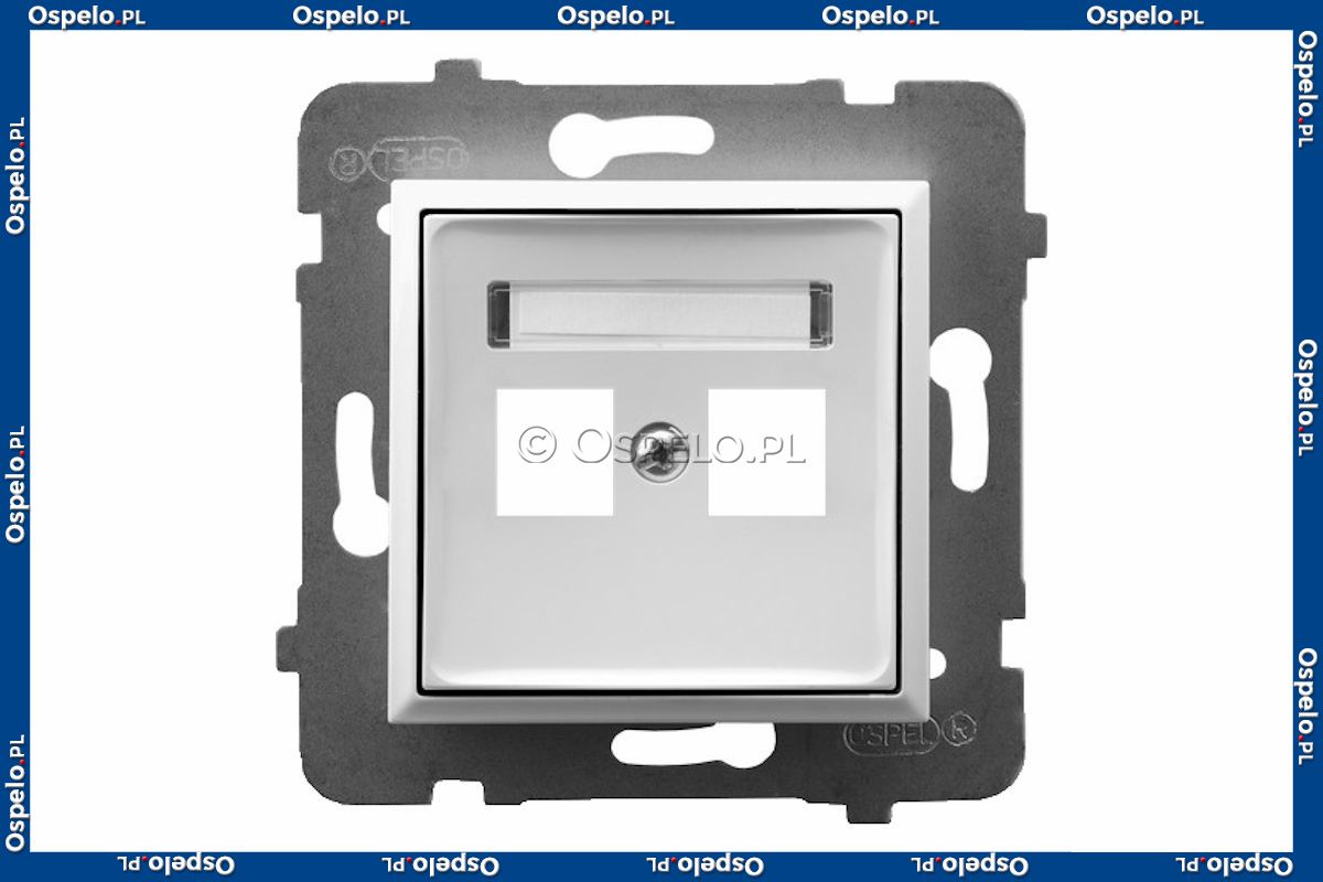 GPK-2U/p/00 Pokrywa gniazda podwójnego typu Keystone prosta Biały Ospel Aria - Widok z przodu