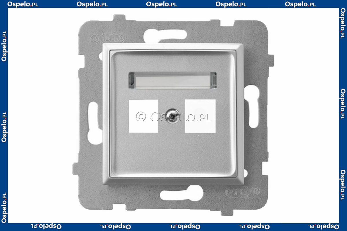 Pokrywa gniazda podwójnego typu Keystone prosta Srebro Ospel Aria