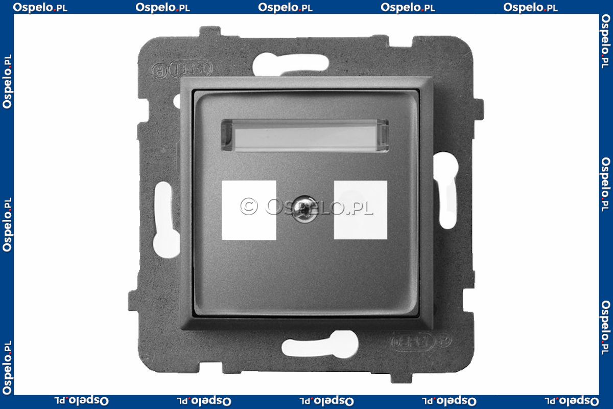 GPK-2U/p/70 Pokrywa gniazda podwójnego typu Keystone prosta Szary Mat. Ospel Aria - Widok z przodu
