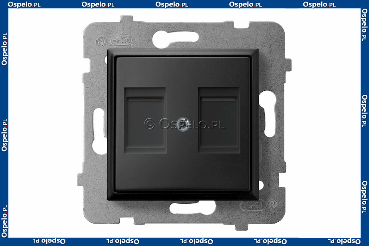 GPK-2UP/p/33 Pokrywa gniazda podwójnego typu Keystone prosta z przesłoną przeciwkurzową Czarny Metalik Ospel Aria - Widok z przodu