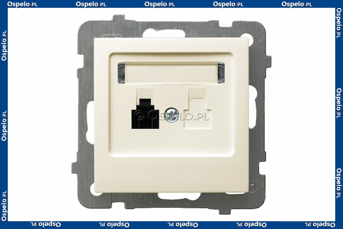 GPT-1G/m/27 Gniazdo telefoniczne pojedyncze Ecru Ospel As - Widok z przodu