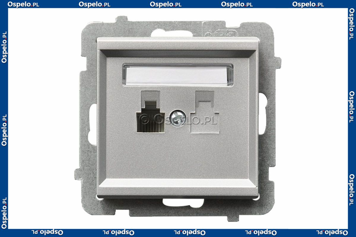 GPT-1R/m/38 Gniazdo telefoniczne pojedyncze Srebro Mat Ospel Sonata - Widok z przodu