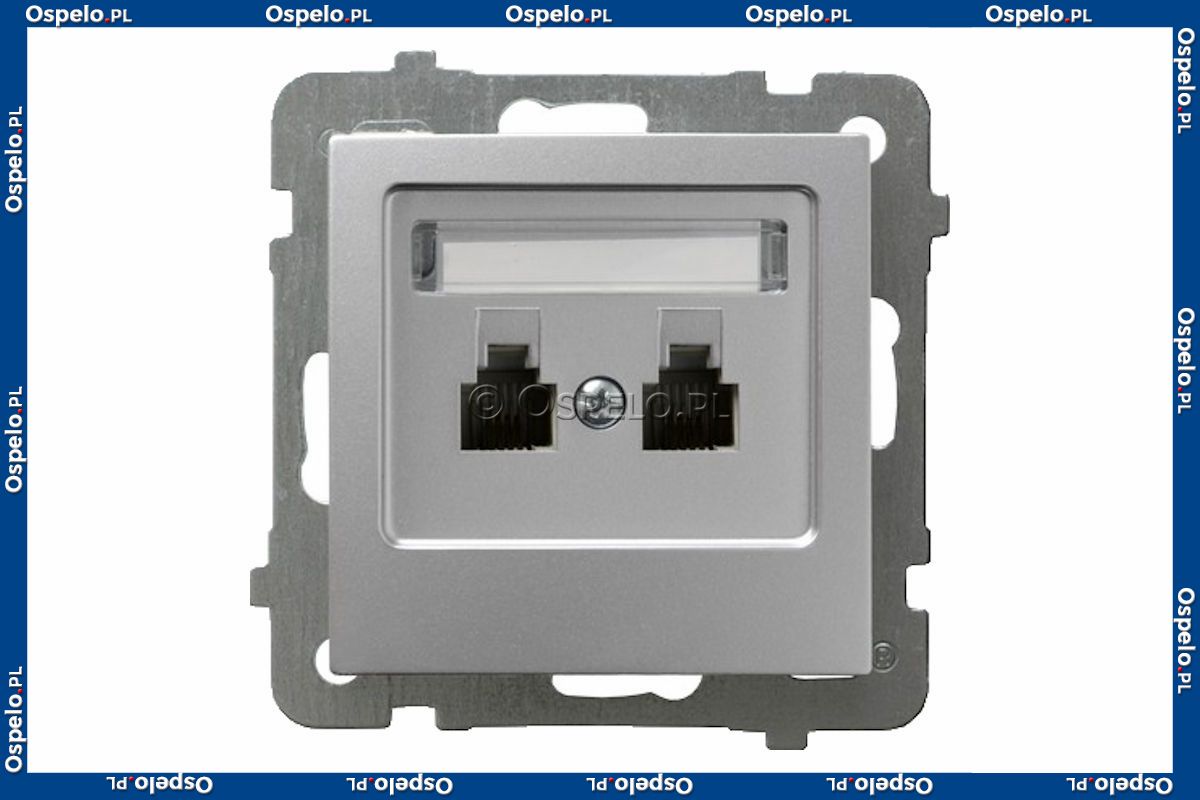 Gniazdo telefoniczne podwójne niezależne Srebro Ospel As