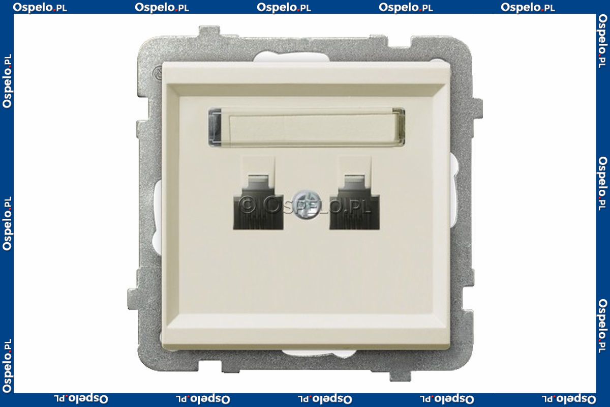 GPT-2RN/m/27 Gniazdo telefoniczne podwójne niezależne Ecru Ospel Sonata - Widok z przodu