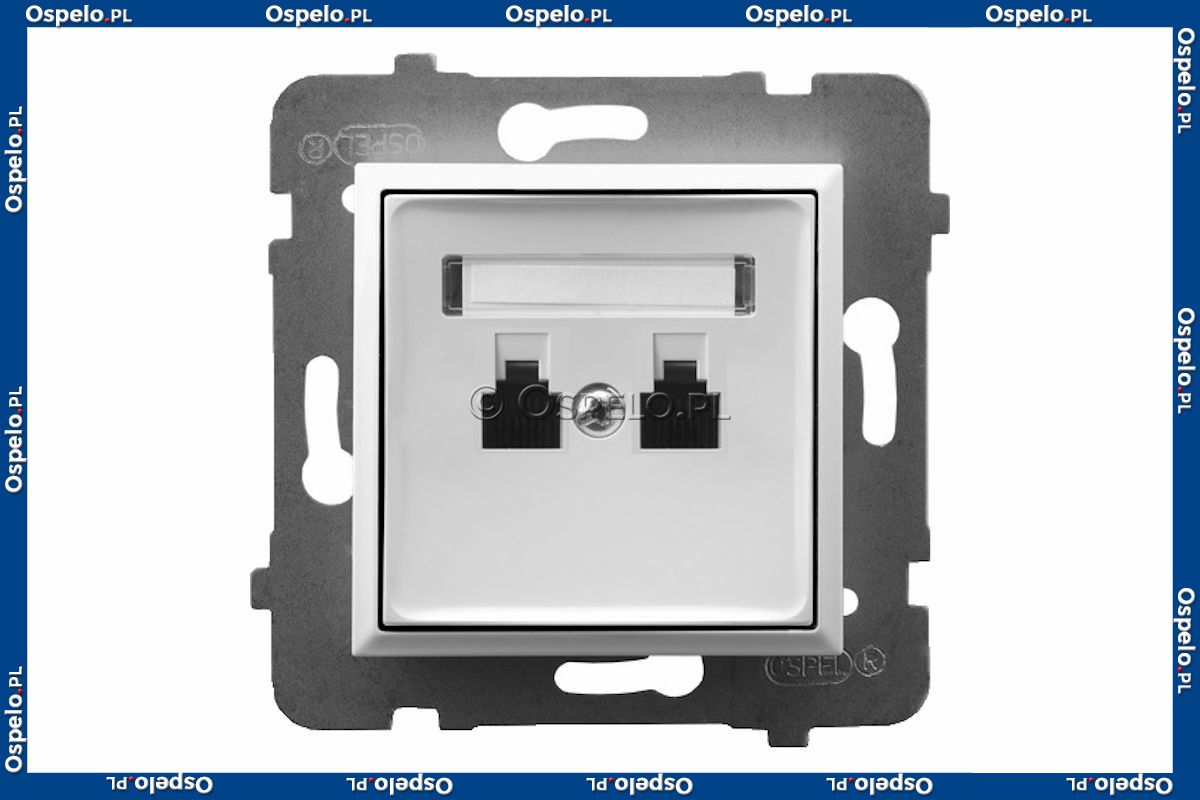 GPT-2UN/m/00 Gniazdo telefoniczne podwójne niezależne Biały Ospel Aria - Widok z przodu